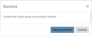 Clicking “Submit” will send the order directly to the supporting brokerage.
