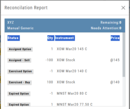 It is important to reconcile expired traded to properly display profit. If there are unreconciled expired options, the reconciliation window will automatically display when you go to the options tab.