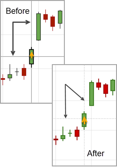 The cursor crosshairs on the chart have been adjusted so they no longer obscure the candlestick wicks